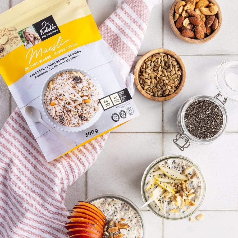 Muesli composé d’un mélange de flocons d’avoine, de fruits séchés et de graines nutritives. Une option déjeuner complète et équilibrée, riche en fibres et source de protéines, qui favorise une digestion saine, une bonne satiété et une énergie durable. Délicieux avec du lait ou du yogourt. Chaque portion apporte 5 g de fibres et 7 g de protéines.