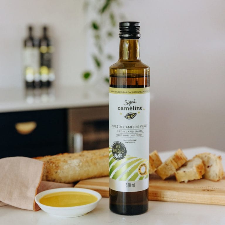 Sauce de type soya sans soya ni blé, fermentée 12 mois au Québec avec de la caméline et des pois d’ici. C’est une délicieuse alternative à la sauce soya, mais sans soya et sans gluten. La rondeur du goût de la caméline se marie à merveille avec légumes racines, fruits de mer, tofu et salades. Avec sa puissance aromatique, quelques gouttes suffiront pour sentir et goûter une délicate saveur iodée et d’umami, teinté de caméline torréfiée en finale. En collaboration avec Symbiose Alimenterre.